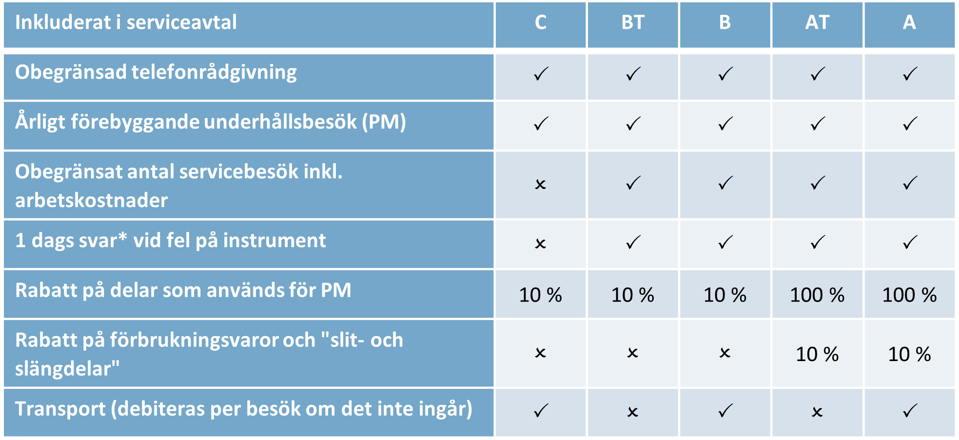 - Öka er effektivitet genom att prioriteras som avtalskund, vilket ger er snabbare och mer flexibel service samt kortare stilleståndstid för era instrument